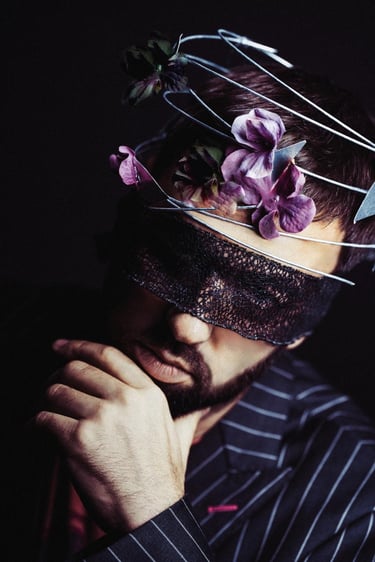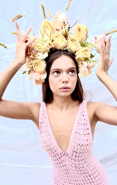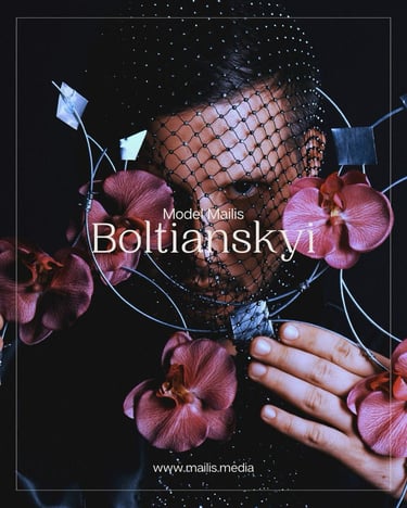 We create wearable floral art — bespoke floral headpieces, flower crowns, wings, and sculptural body elements for runway shows, editorial photo shoots, and magazine covers. Each piece is designed by Yevhenii Boltianskyi, the studio’s lead designer, using mixed materials — where metal, flowers, and plastic form expressive, concept-driven structures.